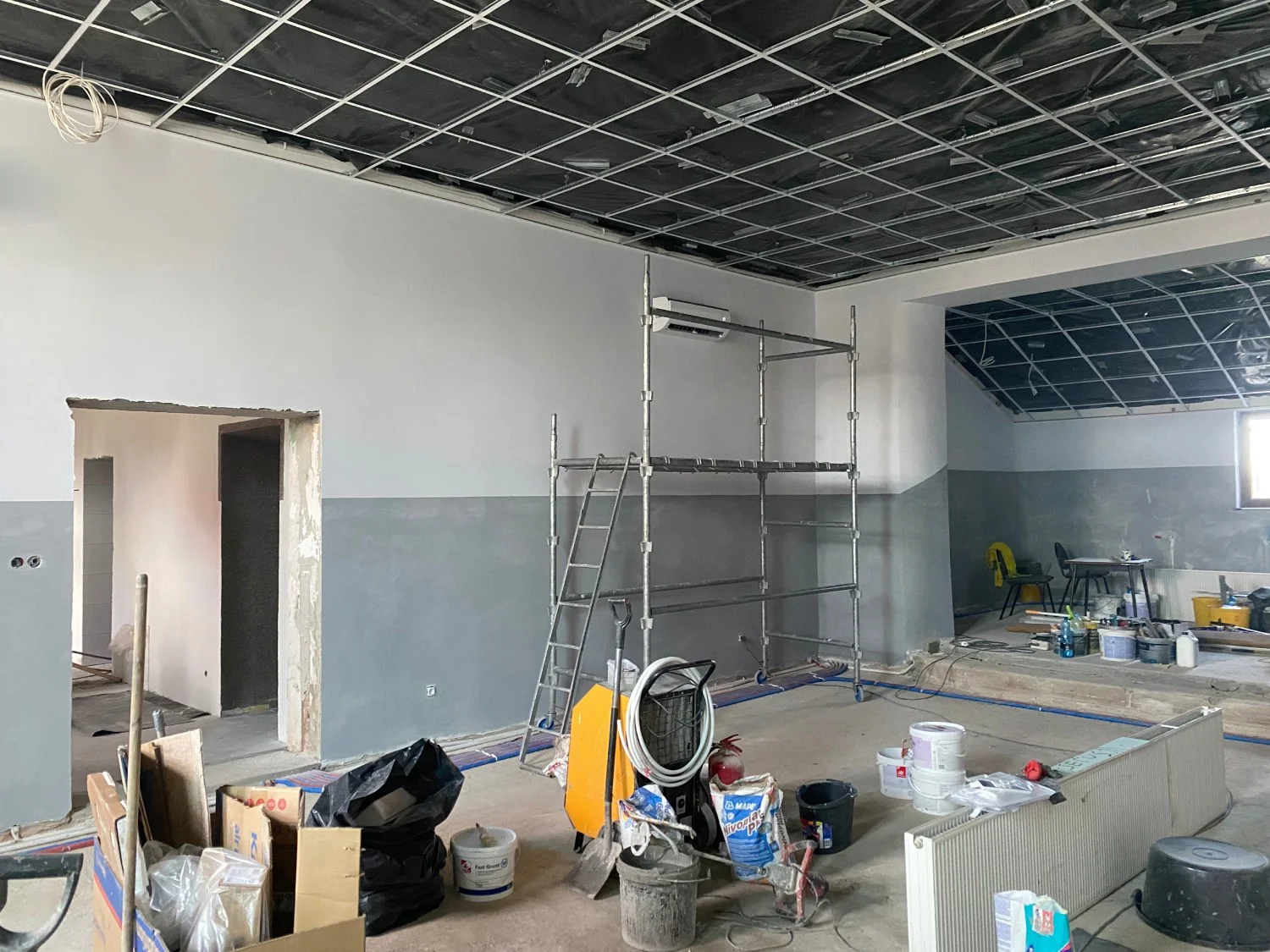 - montaż sufitów podwieszanych oraz malowanie pomieszczeń