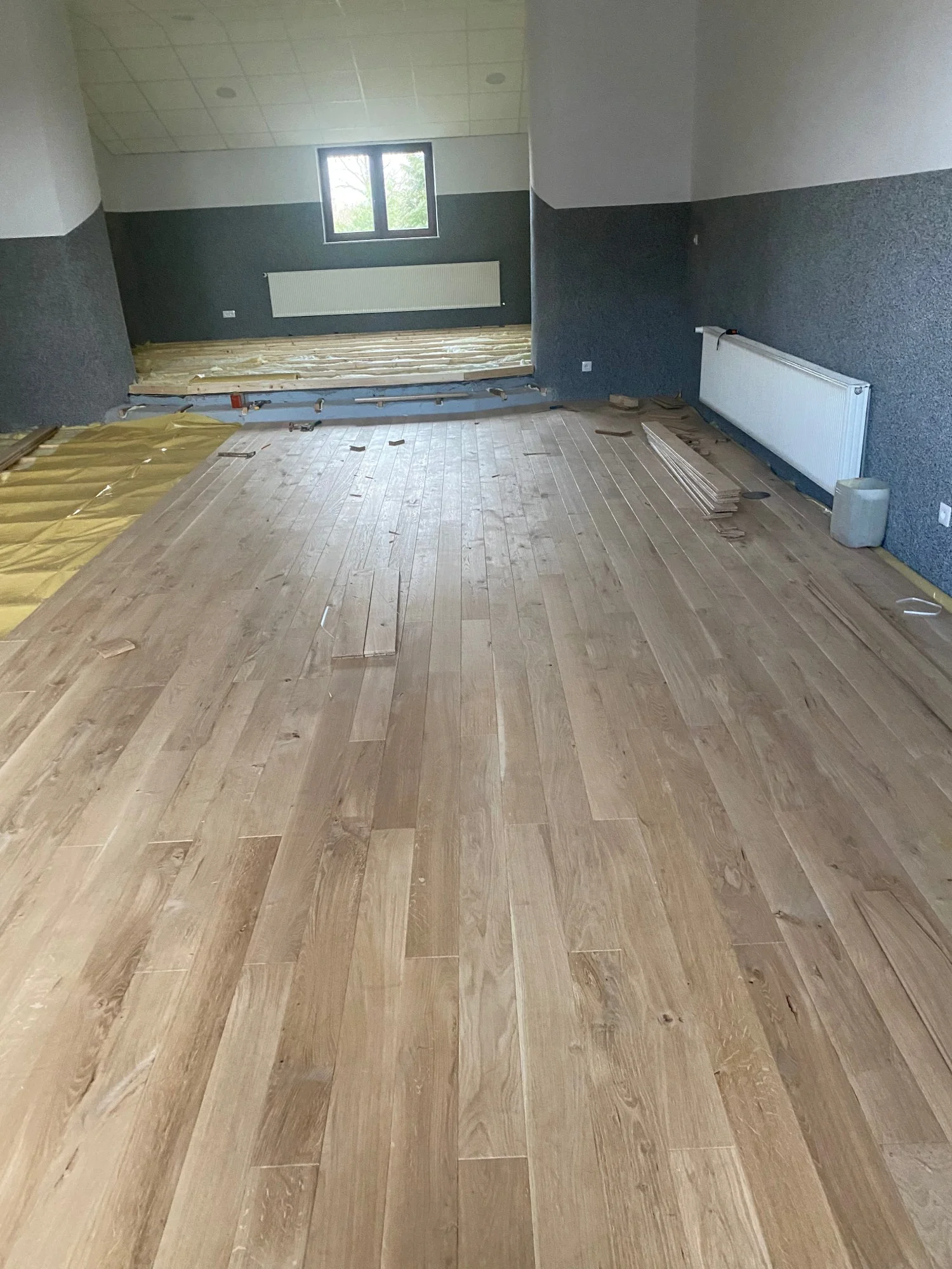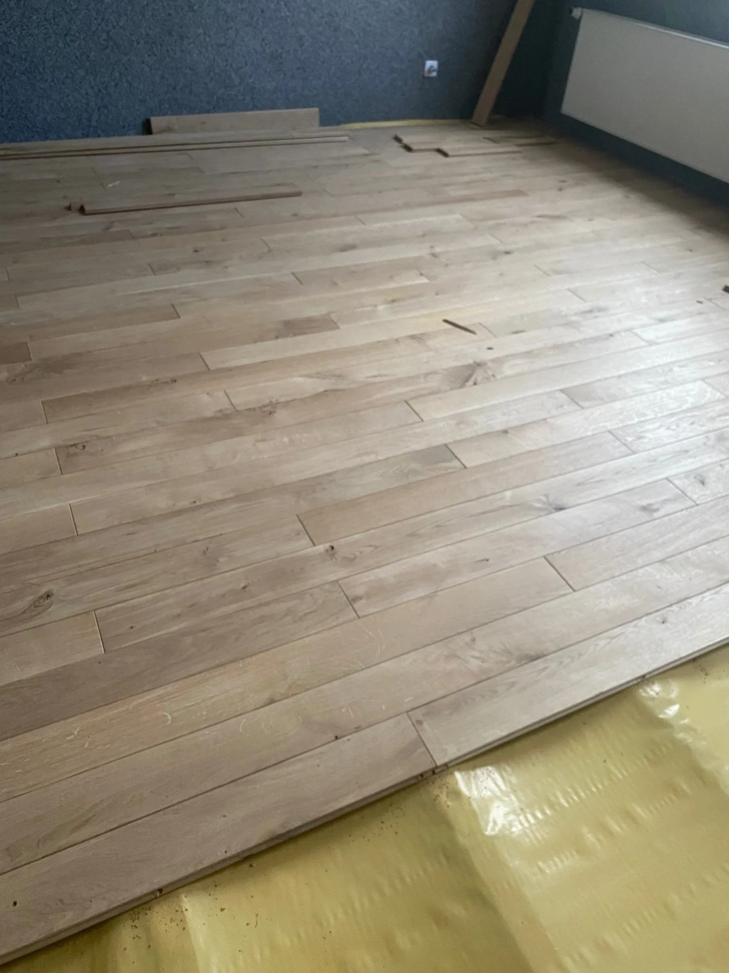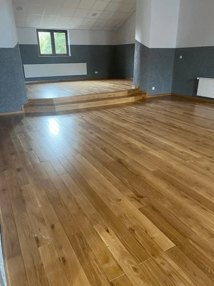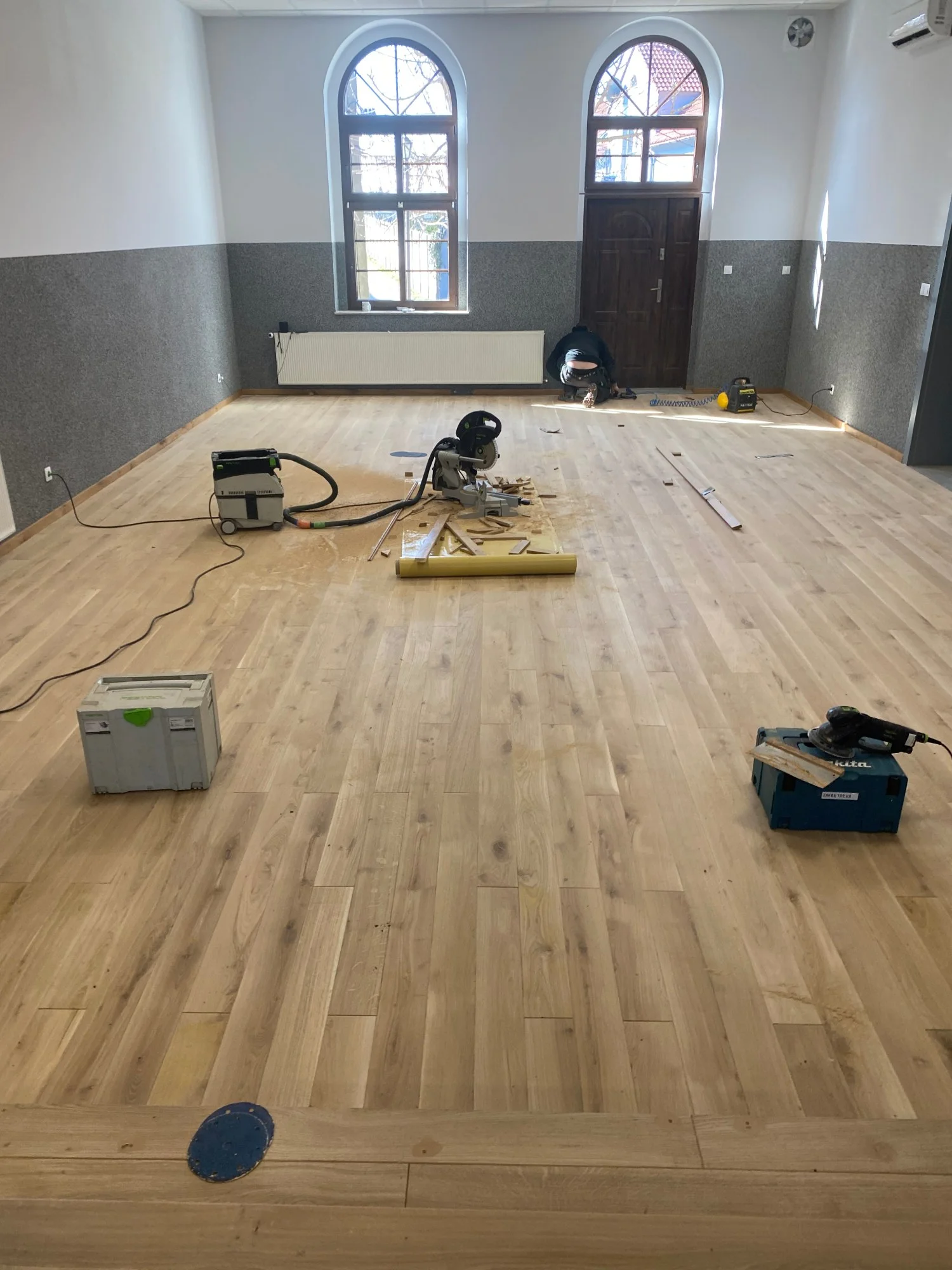 - ułożenie nowej podłogi z litego drewna dębowego – trwałość i elegancja w jednym